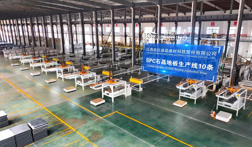 江西吉拉迪諾建材科技股份有限公司,占地面積近300畝,建筑面積13萬多平方米,總投資5億元,擁有20余條生產線,員工近300人。現有SPC石晶地板生產線十條、德國豪邁開槽線兩條、大型商用卷材生產線四條、水墨彩印生產線兩條、同透地板生產線兩條,超大型運動地板生產線一條、是彈性地板行業產能量大,硬件實力強的生產廠商之一。